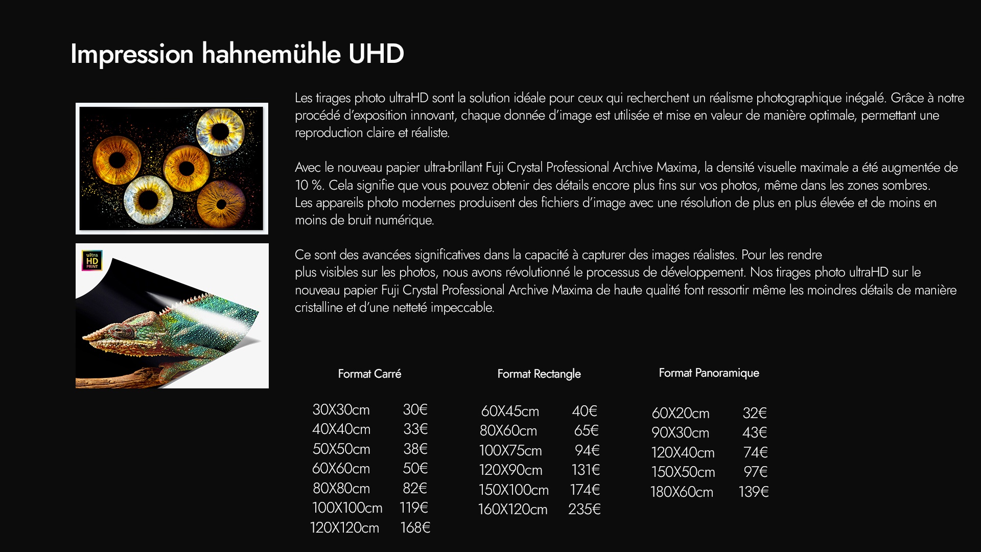 Nous offrons une gamme de services de photographie d'iris et d'impressions artistiques de haute qualité, adaptés à tous les budgets.